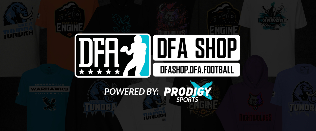News Slider{{widget.isRotating ? 'pause_circle' : 'play_circle'}}DFA Names Durham Welch Director of Football Operations and Recruiting Coordinator Read More DFA Announces Preseason Matchup vs Nebraska Siege Read More 2026 DFA Draft Results Read More The 2026 DFA Draft Takes Place Tonight Read More DFA Names Durham Welch Director of Football Operations and Recruiting CoordinatorDFA Announces Preseason Matchup vs Nebraska Siege2026 DFA Draft ResultsThe 2026 DFA Draft Takes Place Tonight
