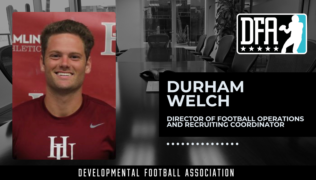 The Developmental Football Association (DFA) continues to build a structured, high-level environment for player development with the addition of Durham Welch as Director of Football Operations and Recruiting Coordinator.