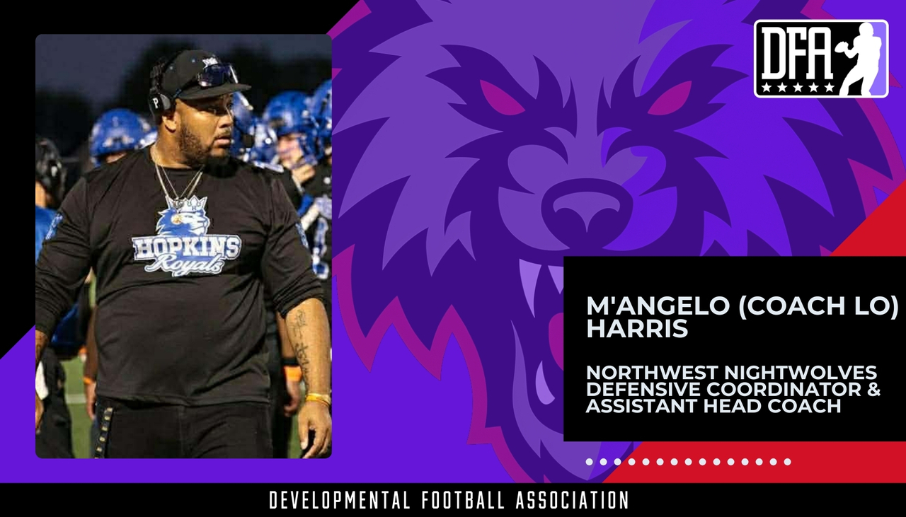 The Northwest Nightwolves are proud to announce M’Angelo “Coach Lo” Harris as Defensive Coordinator and Assistant Head Coach as the Developmental Football Association prepares for its Spring 2026 launch.